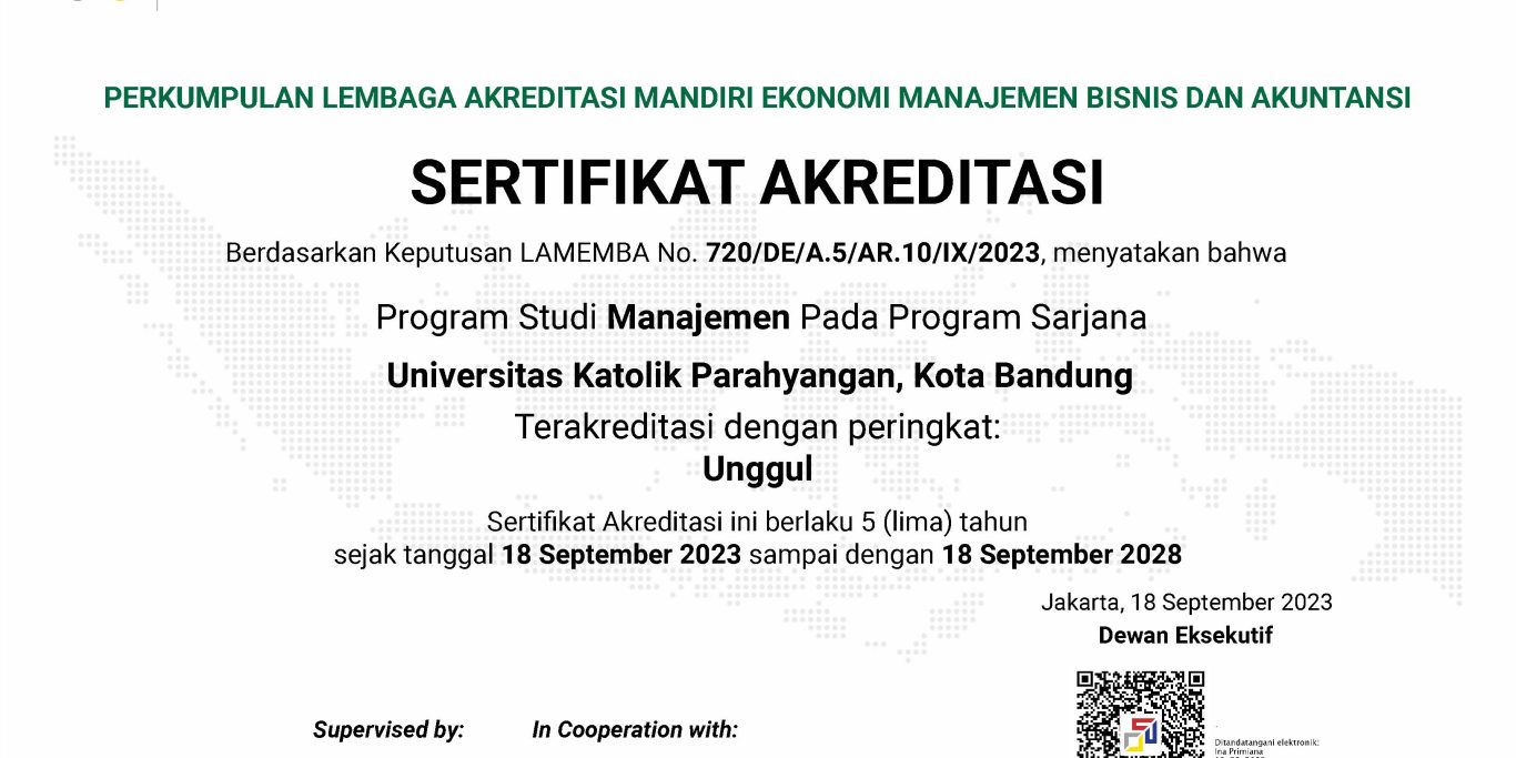 Tim Program Studi Sarjana Akuntansi – Fakultas Ekonomi – Universitas Katolik Parahyangan telah lolos pada kegiatan HSBC Indonesia Business Case Competition 2025 sebagai juara 1 dan selanjutnya mewakili Indonesia untuk mengikuti kegiatan HSBC/HKU Business Case Competition 2025 yang terdiri oleh Stevan Sukandi (Akuntansi ’22), Antonio Alfio (Akuntansi ’22), Aurelius Nathanael …