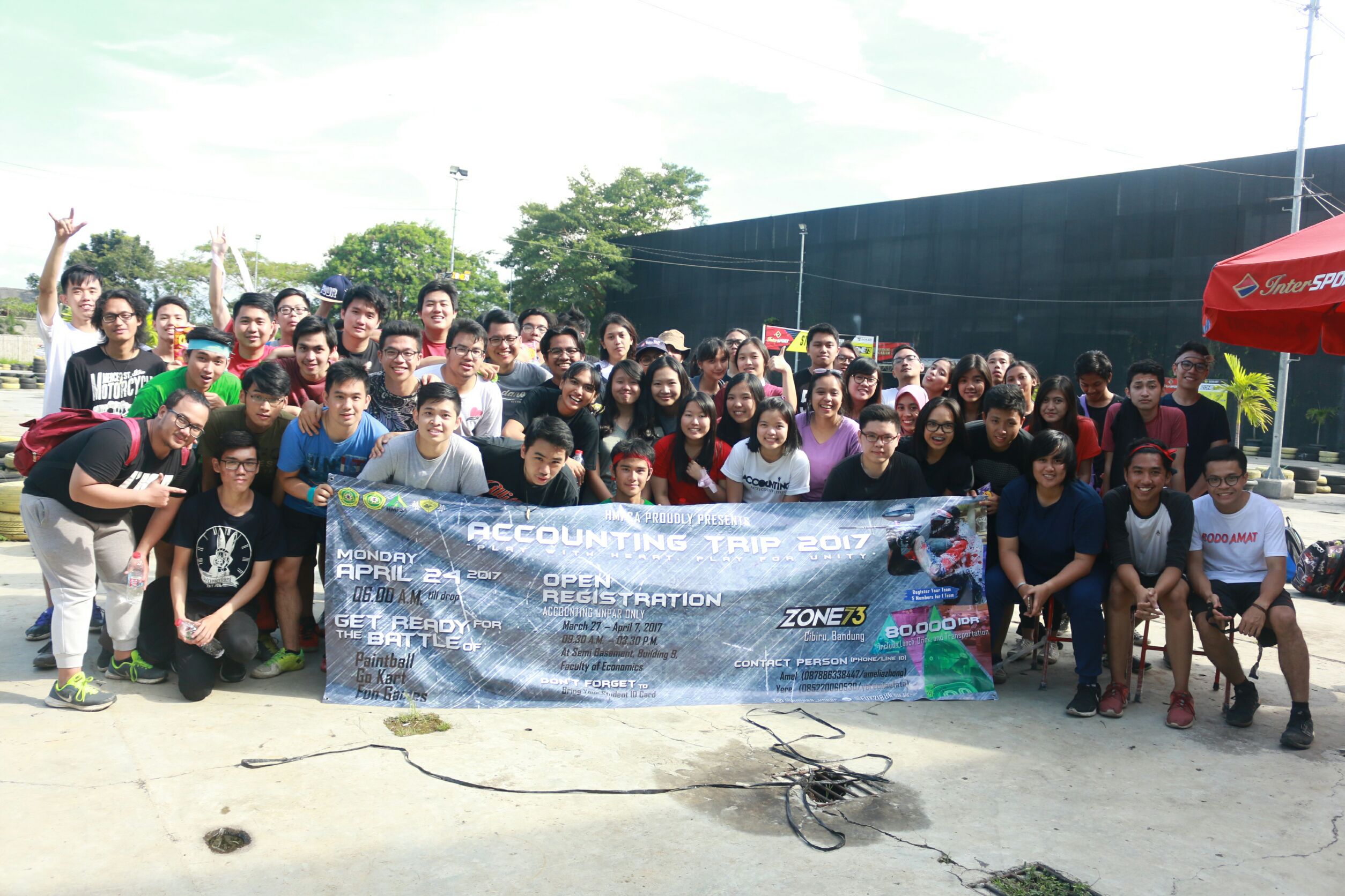 Kegiatan Accounting Trip 2017 dimulai dengan daftar ulang peserta di parkir Rektorat pada pukul 07.00. Dilanjutkan dengan perjalanan menuju Zone 73 bus Unpar. Setelah itu dilanjutkan dengan pembukaan acara di Zone 73. Pada pukul 10.00 Accounting Trip dimulai dengan Paintball lalu dilanjutkan dengan Fun Games yang telah disediakan panitia, kemudian diakhiri dengan Gokart . Setelah itu dilanjutkan ISHOMA pada pukul 13.30 dan diakhiri dengan pembagian hadiah serta foto bersama hingga pukul 15.30 lalu peserta dan panitia pulang kembali ke Unpar menggunakan bus.