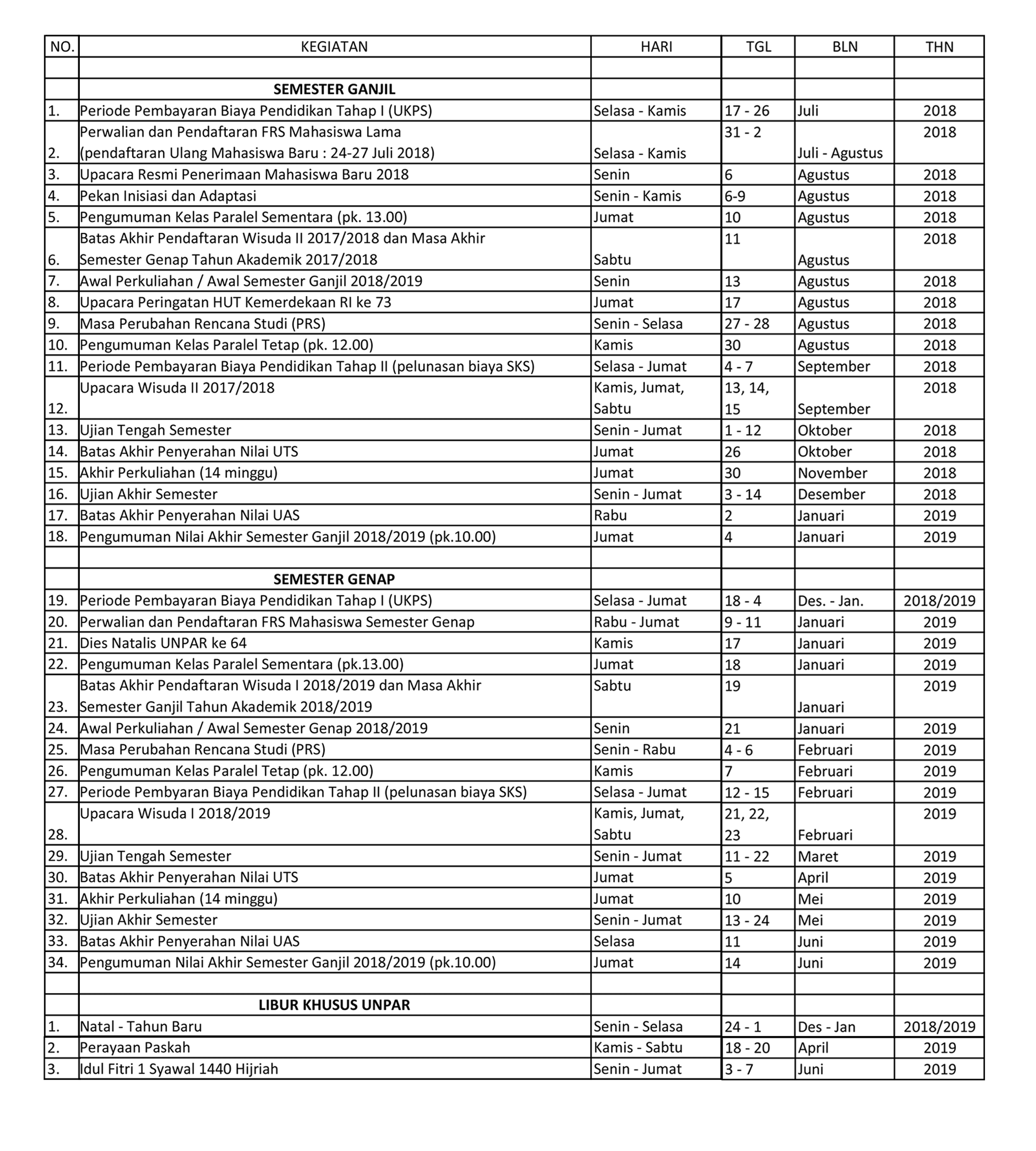 Kalender Akademik Diberitahukan kepada seluruh mahasiswa Sekolah Pascasarjana, Universitas Katolik Parahyangan, berikut informasi 2014-02-14 Laman UNPAR