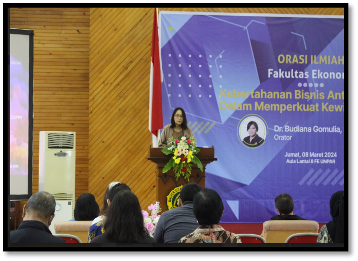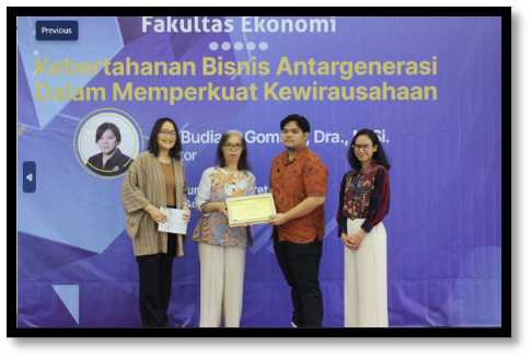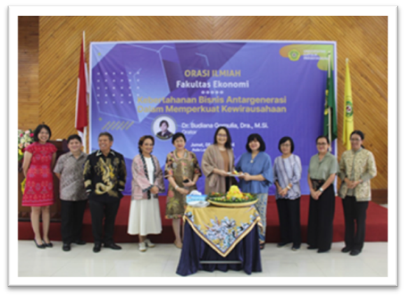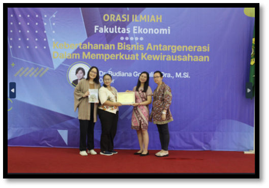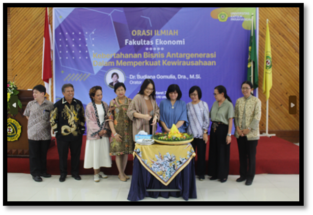 Orator Orasio Ilmiah Fakultas Ekonomi dari Program Studi Sarjana Manajemen yaitu ibu Dr. Budiana Gomulia, Dra., M.Si. dengan judul “Kebertahanan Bisnis Antargenerasi Dalam Memperkuat Kewirausahaan(Nasional)”. Beliau menyampaikan berdasarkan pengalaman membahas sebuah pandangan mengenai meningkatkan posisi dan peran UKM dalam Kewirausahaan (Nasional) dengan memanfaatkan potensi dan kebajikan keluarga “Family Capital”, pembahasan tentang, Kebertahanan Bisnis sebagai proses dan tujuan Paradigma Pembangunan Kewirausahaan UKM di Indonesia.