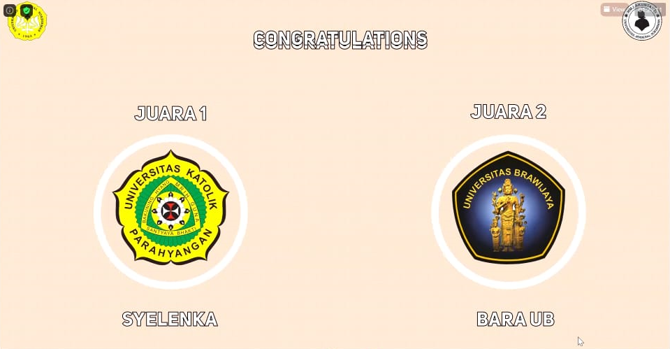 Pada tanggal 2 – 3 Oktober 2020, Tim Lomba Akuntansi Unpar yang diwakili oleh Michele Natalie (2017130005), Helen Wijaya Chandra (2017130026), dan Kevin Kurnia Hermawan (2017130036) berhasil meraih peringkat pertama pada kegiatan Pekan Ilmiah Akuntansi (PIA). PIA merupakan perlombaan Akuntansi berskala nasional yang diselenggarakan oleh Himpunan Mahasiswa Jurusan Akuntansi Fakultas Ekonomi dan Bisnis Universitas Jenderal Soedirman. PIA tahun ini mengangkat tema “Enrich Your Accounting Skills to Develop Competitive Generation”. Sebelumnya, seluruh tim yang mendaftar melakukan online preliminary pada tanggal 5 September 2020. Kemudian 15 tim dengan nilai tertinggi lolos ke babak semifinal yang terdiri dari 3 sesi, yaitu Individual Battle, Team Battle, dan Tap Tap Battle. Tiga tim dengan perolehan nilai tertinggi dari total keseluruhan sesi pada babak semifinal akan lolos ke babak grand final dan melakukan presentasi dengan kasus yang diberikan. Peringkat pertama diraih oleh Tim Syelenka dari Universitas Katolik Parahyangan, peringkat kedua diraih oleh Tima Bara UB dari Universtias Brawijaya dan peringkat ketiga diraih oleh Perbanas 1 dari STIE Perbanas.