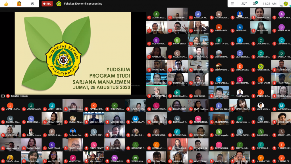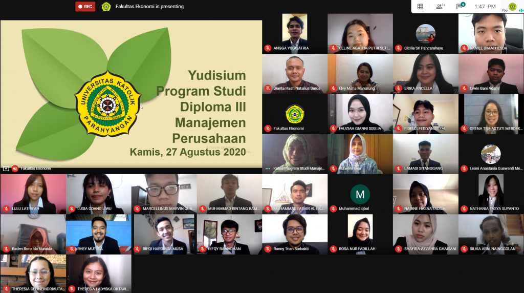 Semenjak bulan April 2020, proses belajar mengajar di Fakultas Ekonomi UNPAR dilaksanakan secara daring dikarenakan adanya pandemi covid 19. Hal ini sesuai dengan arahan dari Menteri Pendidikan dan Kebuadayan, Bapak Nadiem Makarim, yang menyatakan bahwa pembelajaran perguruan tinggi pada semua zona masih wajib dilaksanakan secara daring hingga ada kebijakan lebih lanjut. Begitu juga dengan kegiatan Yudisium semester genap tahun akademik 2019/2020 yang diselenggarakan secara daring melalui platform gmeet.